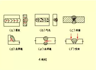 裂紋、氣孔、未焊透、夾渣、咬邊、燒穿、凹坑、塌陷、未焊滿。