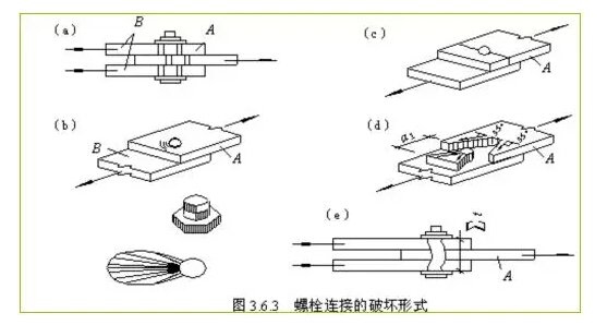 e)螺桿因太長或螺孔大于螺桿直徑而產(chǎn)生彎、剪破壞(板疊厚度≤5d);
