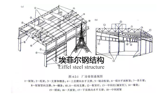 單層廠房鋼結(jié)構(gòu)一般是由檁條、天窗架、屋架、托架、柱、吊車梁、制動(dòng)梁(或桁架)、各種支撐以及墻架等構(gòu)件組成的空間剛性骨架。