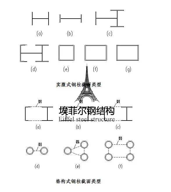 柱按柱的截面形式分為:實(shí)腹式柱和格構(gòu)式柱。