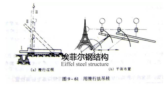 2). 滑行法:?jiǎn)螜C(jī)或雙機(jī)抬吊鋼柱,起重機(jī)只起鉤,使鋼柱腳滑行而將鋼柱吊起。為減少鋼柱腳與地面的摩擦力,需在柱腳下鋪設(shè)滑行道。