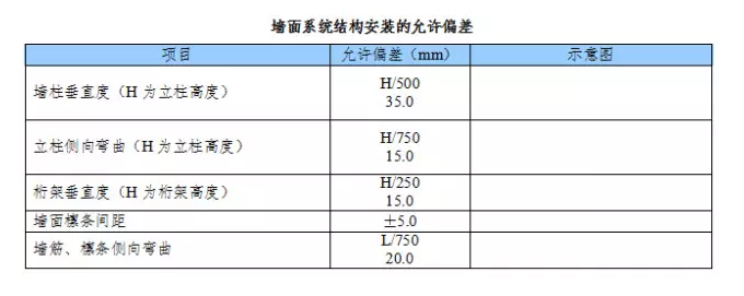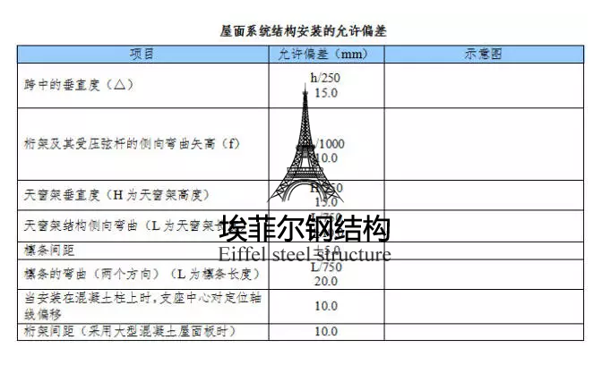 屋面系統(tǒng)結(jié)構(gòu)安裝的允許偏差應(yīng)符合下表規(guī)定。