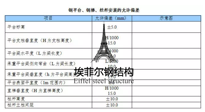 (4) 平臺(tái)、梯子和欄桿安裝的允許偏差應(yīng)符合下表規(guī)定。
