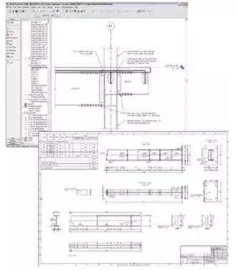 Revit Structure設(shè)計(jì)圖形和信息可以重新用到Robobat RCAD等建筑詳圖設(shè)計(jì)解決方案中。如圖所示。請(qǐng)注意鋼結(jié)構(gòu)詳圖設(shè)計(jì)應(yīng)用中添加的更多制造信息。