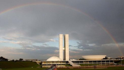 巴西議會大廈矗立于巴西首都巴西利亞市的核心三權(quán)廣場上,是由巴西建筑師奧斯卡·尼邁耶(Oscar Niemeyer)設(shè)計(jì),整幢大廈分為參議院、眾議院會議大廳和辦公樓3部分,由縱橫兩條軸線組成,水平、垂直的體形對比強(qiáng)烈。參議院、眾議院會議大廳的外形均是半球體,一仰一覆放置,猶如兩只巨大的“碗”;而中間的辦公大樓則是由兩座細(xì)長的高樓連接而成,猶如一雙“筷子”,整座建筑相互協(xié)調(diào),巧妙地組合在一起,看上去就像一組“組合餐具”,引人入勝。