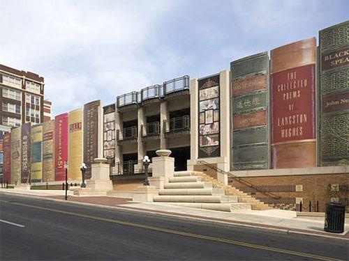 堪薩斯市公共圖書館(Kansas City Public Library)位于美國密蘇里州堪薩斯城,于1873年建成,但是它引人注目的原因并不是館中藏書豐富,而是停車場的獨(dú)特造型——“書架”。“書架”上“擺放”著22本古典文學(xué)圖書,包括《指環(huán)王》《二十二條軍規(guī)》《夏洛特的網(wǎng)》等,全都是堪薩斯城居民推薦的圖書,其中書脊高7.6m,寬2.7m,立于墻面,兩本“書”之間用金屬樓梯井連接,模仿“書擋”,整個(gè)建筑猶如巨大的書架,體現(xiàn)了堪薩斯城居民對圖書的熱愛,因此被譽(yù)為“美國最酷的圖書館”。