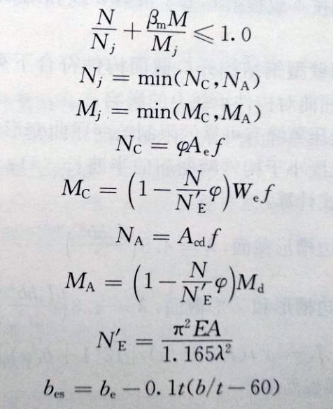 β m——等效彎矩系數(shù),按現(xiàn)行國家標(biāo)準(zhǔn)《冷彎薄壁型鋼結(jié)構(gòu)技術(shù)規(guī)范》GB50018確定。