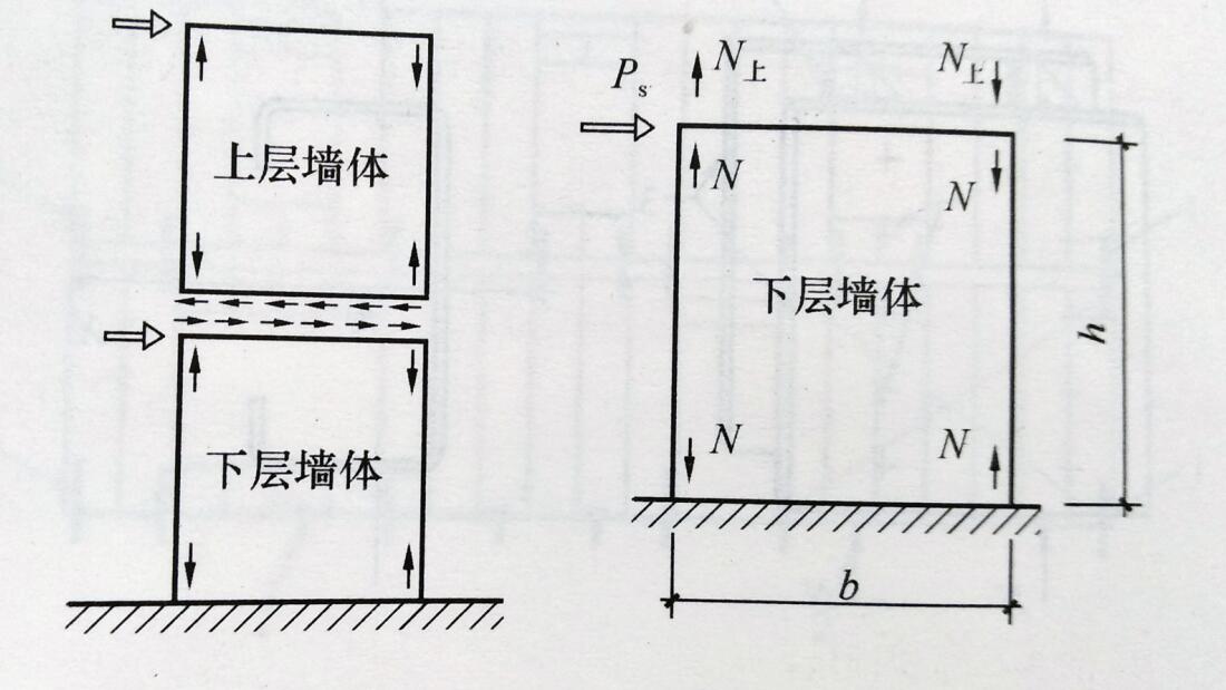 圖3 上、下層間由傾覆力矩引起的向上拉拔力和向下壓力