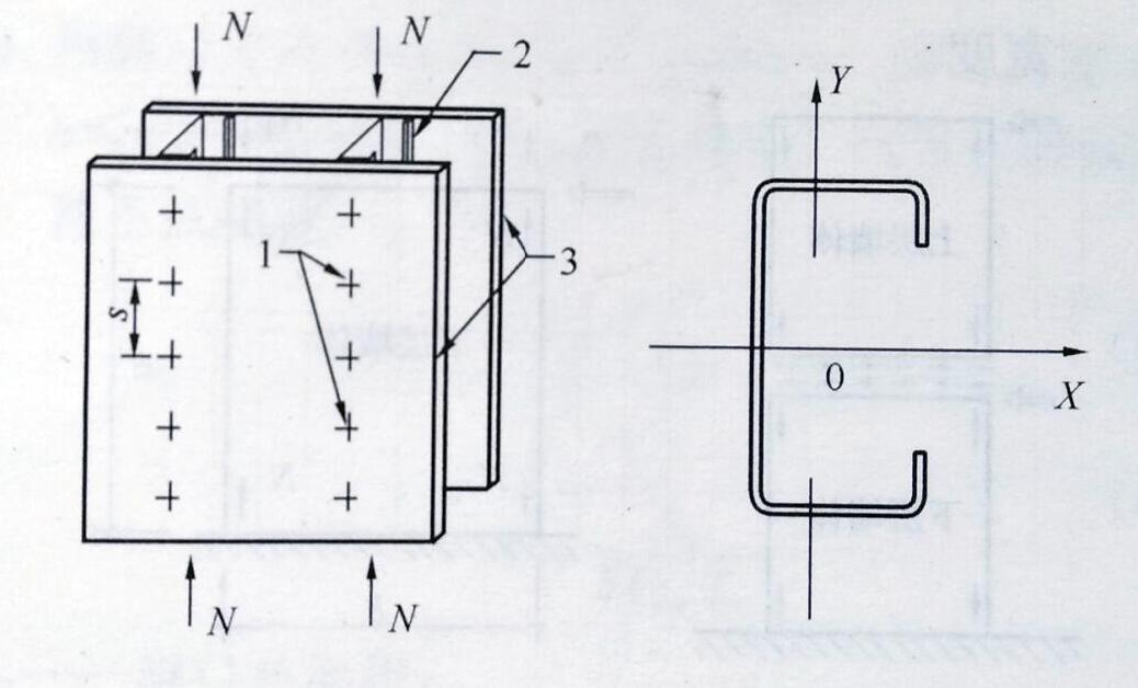 2、承重墻體立柱還應對螺釘之間的立柱段,按軸心受壓桿進行繞截面弱軸的穩(wěn)定性驗算。當墻體兩側有結構面板時,立柱段的計算長度ι0y應取2s,s為連接螺釘的間距。