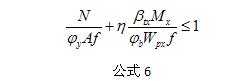Φy、Φb、η和βtx應按5.2.2條計算彎矩作用平面外穩(wěn)定的有關(guān)規(guī)定采用。