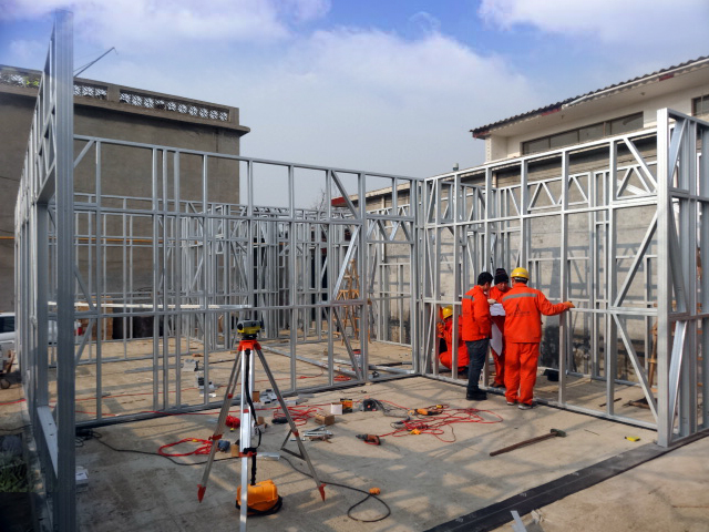 輕鋼別墅-欒城項(xiàng)目輕鋼龍骨主體組裝現(xiàn)場
